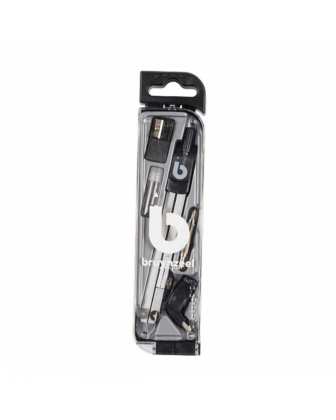 Deze 3-delige passerset van Bruynzeel is geschikt voor school en algemeen gebruik. De set komt in een handige plastic opbergdoos, is compact dus handig mee te nemen, en bevat naast de passer een adapter, reserve potloodvullingen en een slijper.